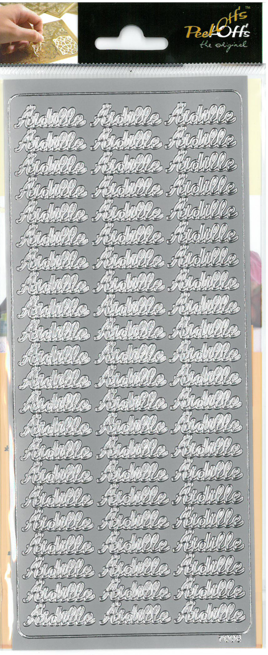 Hopeanvärinen ääriviivatarra Äidille -tekstillä. Pakkauksessa 1 arkki, arkissa 66 tarraa. Materiaali muovi. Happovapaa. Tuotteen koko: 26,3 x 11,2cm.