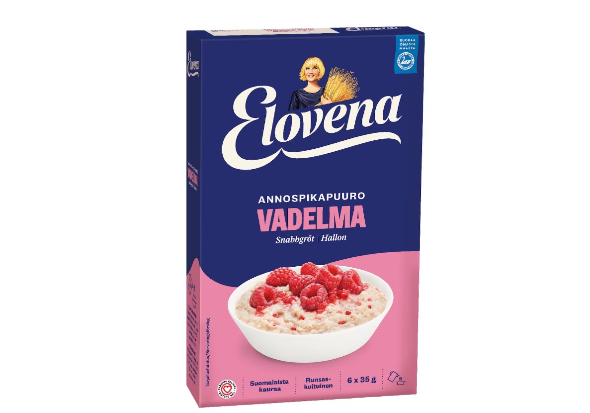 Elovena annospikapuuro vadelma on raikkaan marjaisa puurovaihtoehto. Annospussista oma lempipuuro valmistuu kätevästi suoraan lautaselle, tarvitaan vain kiehuvaa vettä.