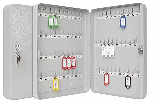 Jauhemaalattu teräksinen avainkaappi pitää avaimet järjestyksessä ja tallessa.