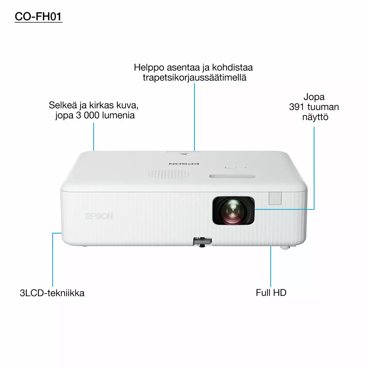 Suunniteltu malleihin: Epson EB-E01, EB-E10, EB-FH06, EB-S41, EB-U05, EB-U42, EB-W05, EB-W06, EB-W42, EB-W51, EB-X41, EH-TW650, EH-TW750, EX3280, EX5260, EX5280, Pro EX7280, Pro EX9210, Pro EX9220...