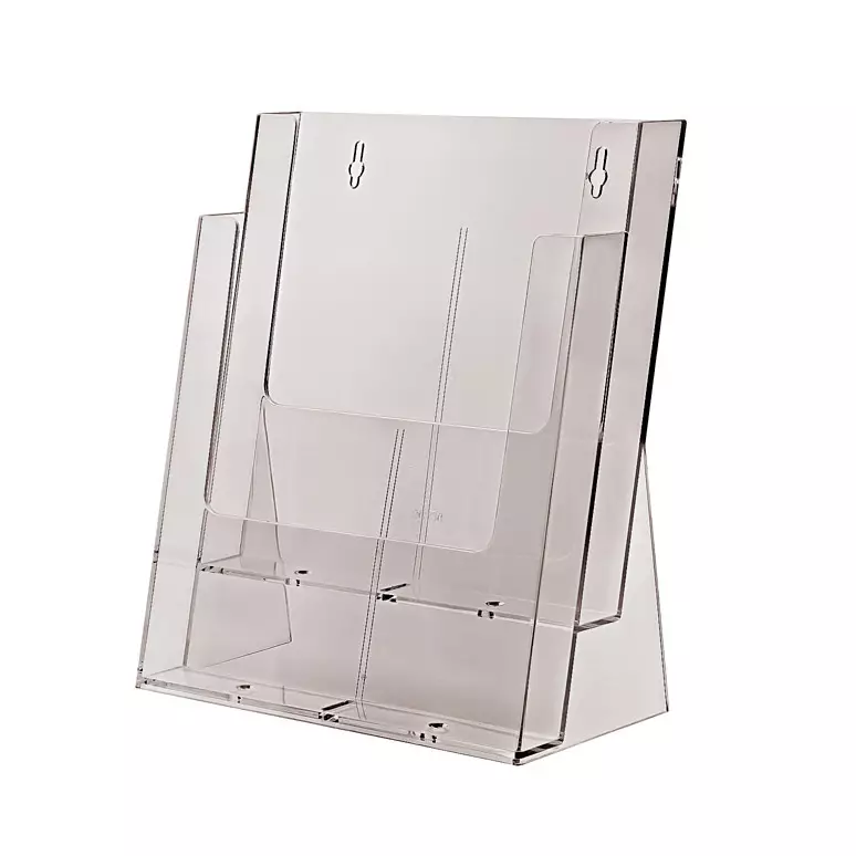 - Kirkkaasta akryylistä valmistettu esitepidike.