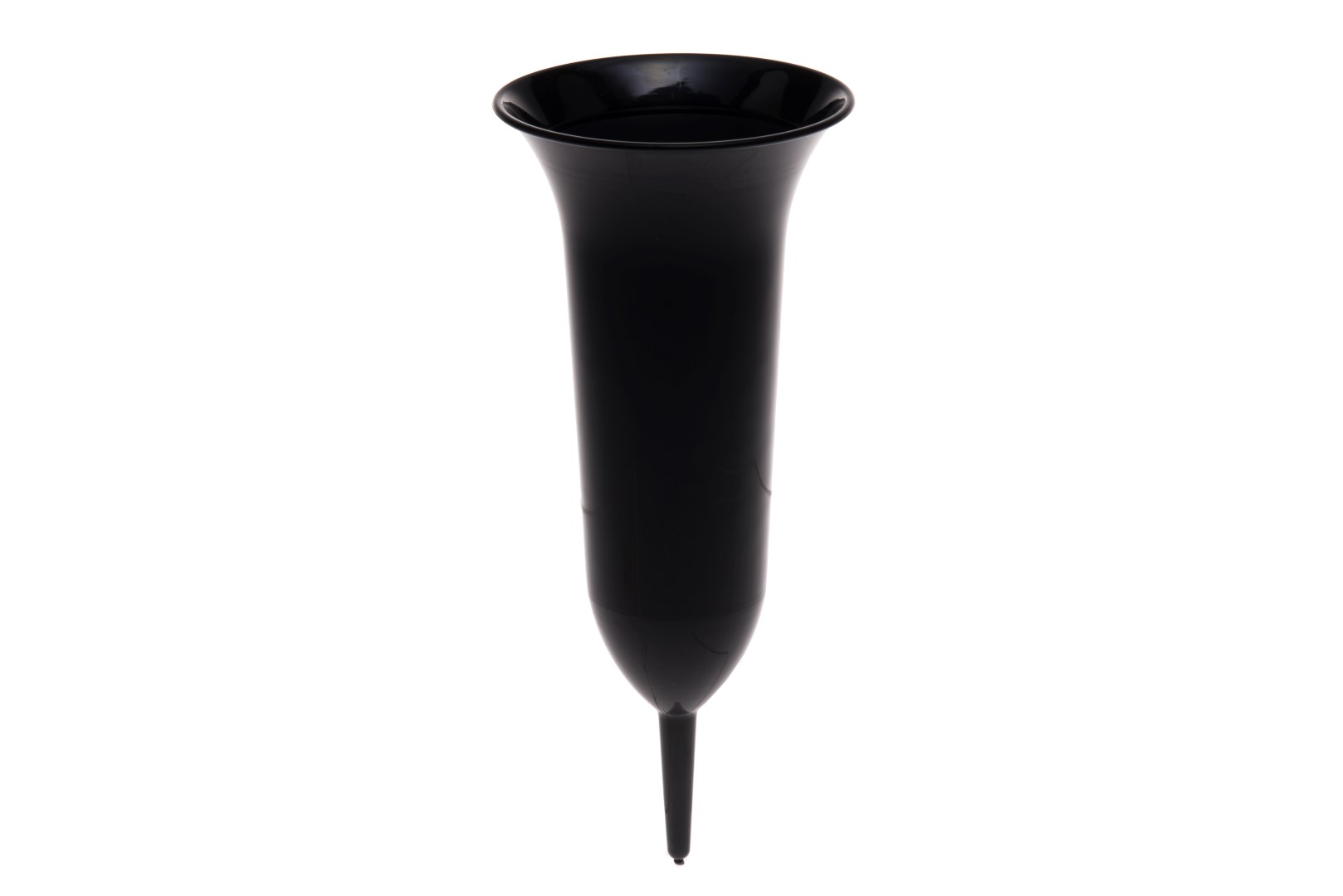 Hautamaljakko Musta. Muovi. 27 cm. Tilavuus n. 0,6 L. Suuaukon halkaisija 11,5 cm. Korkeus 27 cm.