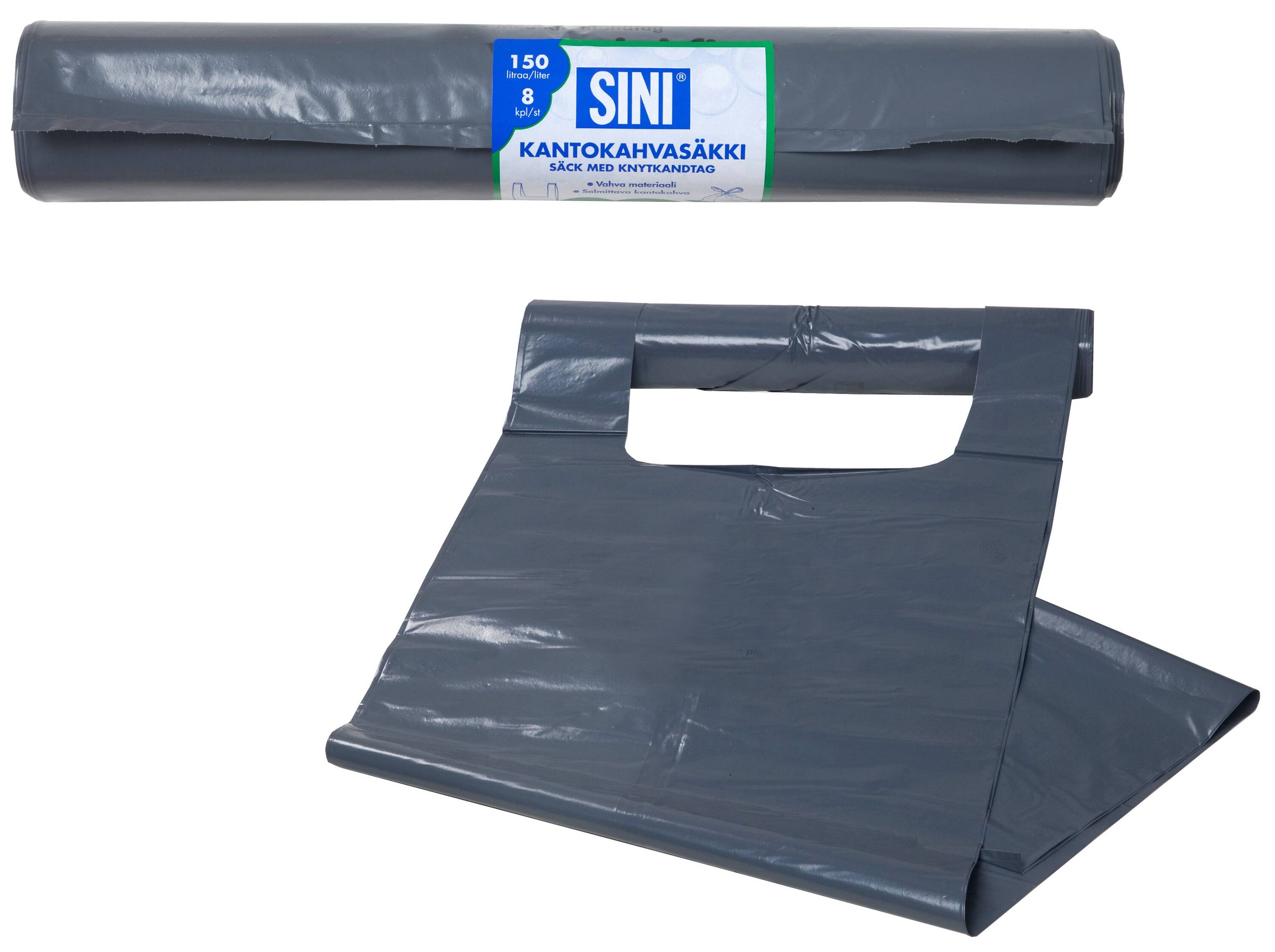 Kantokahvasäkki on 150 litran vetoinen vahva jätesäkki, jossa on helposti solmittavat kantokahvat. Kestävä Kantokahvasäkki on valmistettu erikoisvahvasta 0,05 mm paksusta kierrätysmuovista, joten se kestää hyvin myös painavaa jätettä, kuten puutarhajätteitä ja oksia.