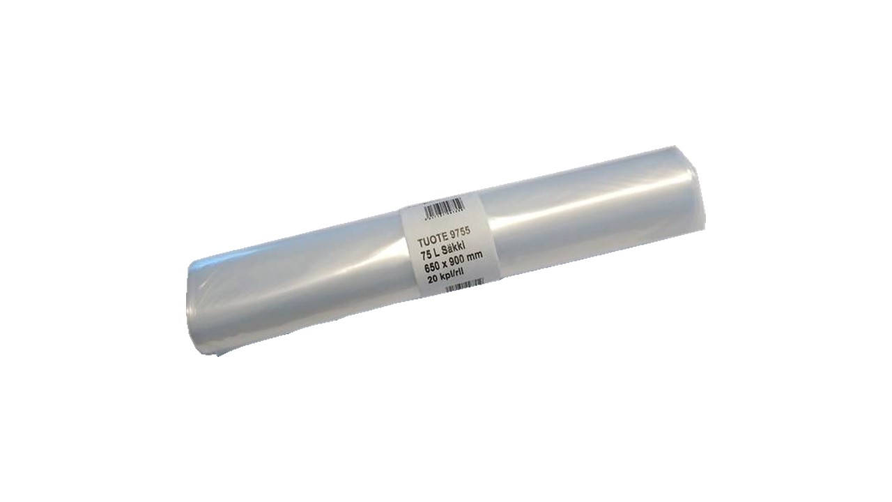 Jätesäkki 75L, kirkas - keskikokoinen, kirkas 75 litran säkki roskikseen tai vaikkapa tavaran lajitteluun ja säilytykseen!
