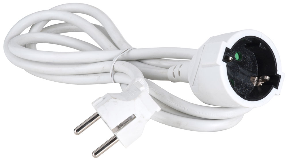 Valkoiset maadoitetut jatkojohdot sisäkäyttöön. Valikoimassa on useita johdon pituuksia puolesta metristä viiteen metriin saakka. Lapsisuojallinen tuote.