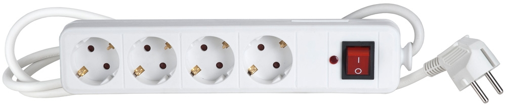 4-osainen jatkojohto ylijännitesuojalla ja kytkimellä.