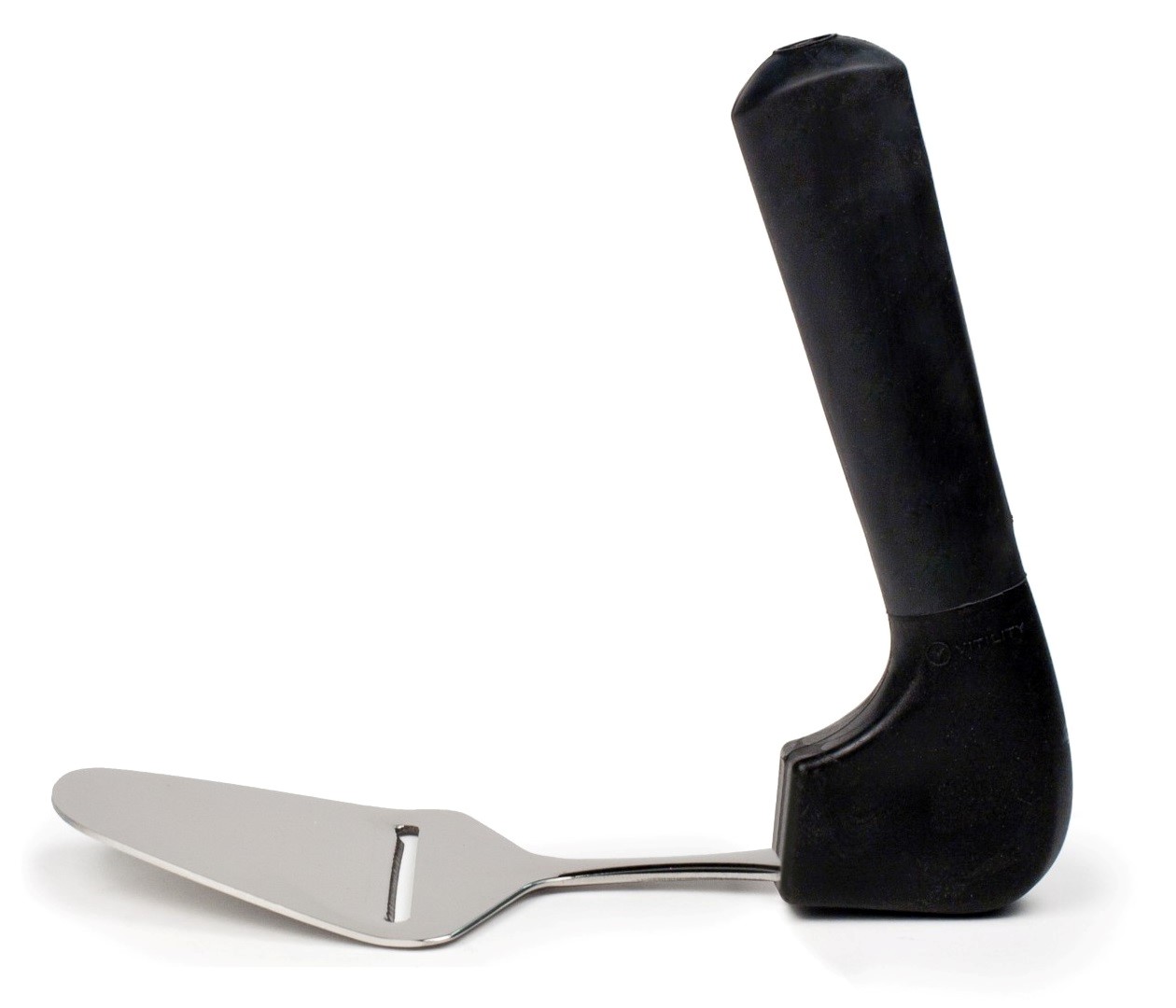 Juustohöylässä on kulmaan asetettu kahva, joten höylän käyttö ei edellytä suurta voimaa. Kulmaan asetettu kahva pitää käden, ranteen ja käsivarren luonnollisessa asennossa, mikä estää ranteen liiallisen voiman käytön sekä tähän liittyvän kivun ja/tai tulehduksen. Konepesun kestävä. Pituus 15,5 cm.