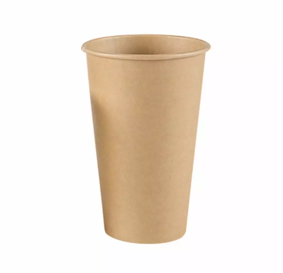 Kartonkinen, kokoruskea kertakäyttökuppi.