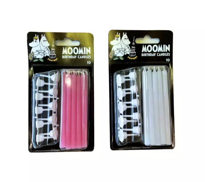 Muumi-aiheiset kakkukynttilät syntymäpäiväkakkuun. Kaksi värivaihtoehtoa. Väri valikoituu tilaukselle sattumanvaraisesti. Halutessasi voit esittää väritoiveen tilauksesi vapaamuotoisessa tekstikentässä. Toteutamme toiveen varastosaldojen puitteissa.