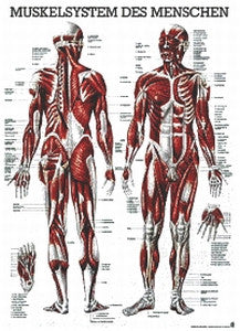 Laadukas kartta syvista ja pinnallisista lihaksista edestä ja takaa. Kieli: englanti (kuvasta poiketen). Kartan koko 70 x 100 cm.