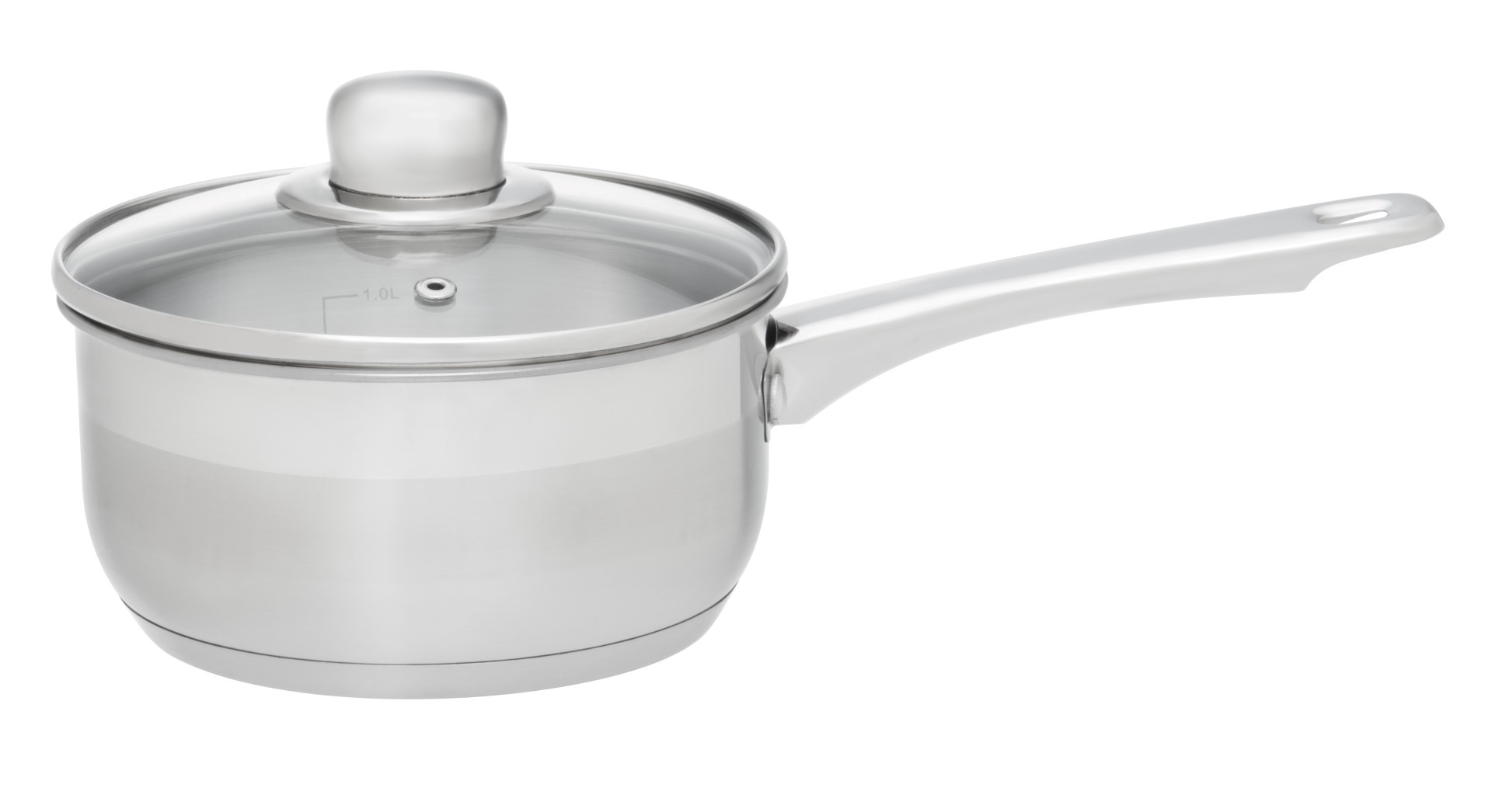 Kevyt alumiinipannu tarttumattomalla pinnoitteella. Alumiininen pohja magneettisesti johtavalla ruostumattomalla teräslevyllä.