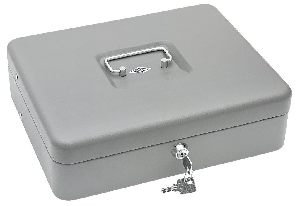 Avaimelliseen kassalippaaseen mahtuu kolikoita yhteensä 137,60€ edestä. Summassa mukana 1 ja 2 snt kolikot. Kassalippaassa omat osiot kolikoille ja seteleille. Kolikko-osio liukuu automaattisesti setelien päältä kassalipasta avattaessa. Setelilokeroiden takana on tilaa kolikkopötköille tai kuiteille.