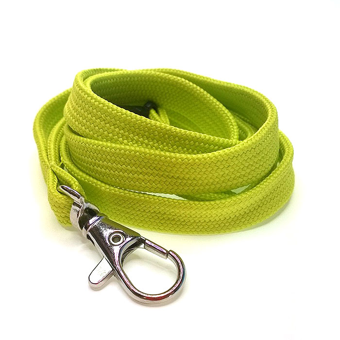 Putkeenkudottu tuubikaulanauha, jossa niskassa turvalukko ja kiinnikkeenä papukaijakoukku. Valmistusmateriaali polyesteri.