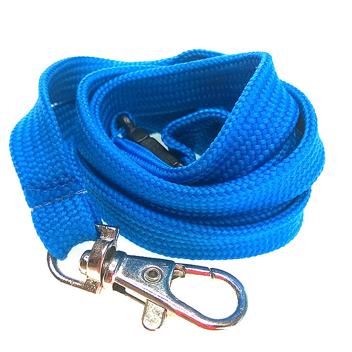 Putkeenkudottu tuubikaulanauha, jossa niskassa turvalukko ja kiinnikkeenä papukaijakoukku. Valmistusmateriaali polyesteri.