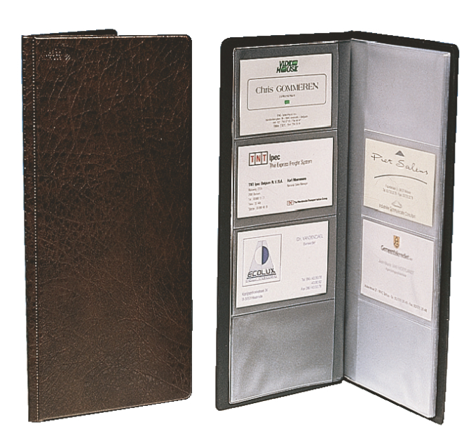 Käyntikorttikotelo Kapasiteetti 128 käyntikortille. Maksimikortin koko 63x95mm. Väri: musta Mitat: 130x12x285 mm
