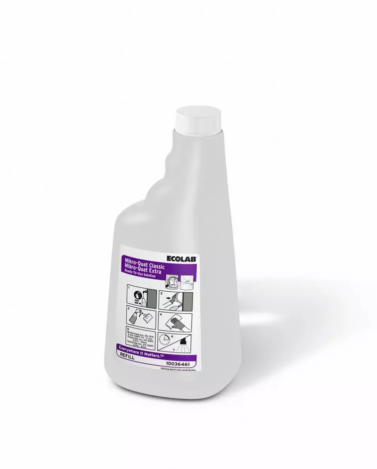 Täyttöpullo tuotteille Ecolab Mikro-Quat Extra ja Mikro-Quat Classic.