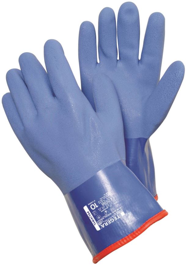 Kemikaalisuojakäsine, talvivuori, 0,4* mm (*chem-layer) PVC (Vinyyli), täyspinnoitettu, mikrokarhennus, akryyli, fleece, Cat. III, raskaat työt, työkäsine, vinyylikäsine, vinyylihanska