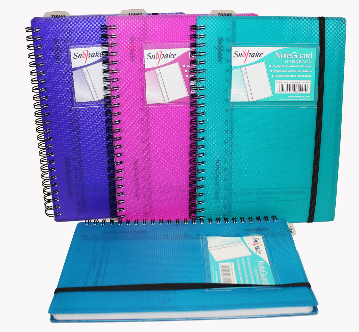 MUISTIKIRJA Noteguard Hardback A5 A5. 75 arkkia/150 sivua. Vahvat kannet, viivoitettu paperi, kuminauha. Takakannessa vinotasku. Viivain/kirjanmerkki. Kierresidottu.