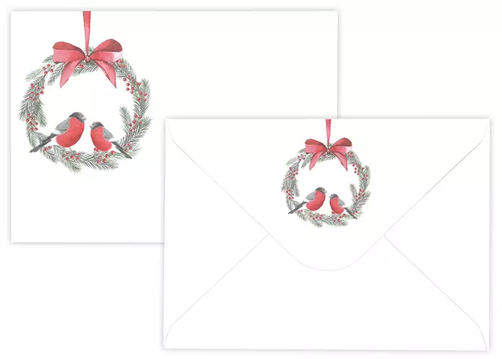 Kirjekuori C6 Punatulkut ja kranssi 10kpl/pkt
