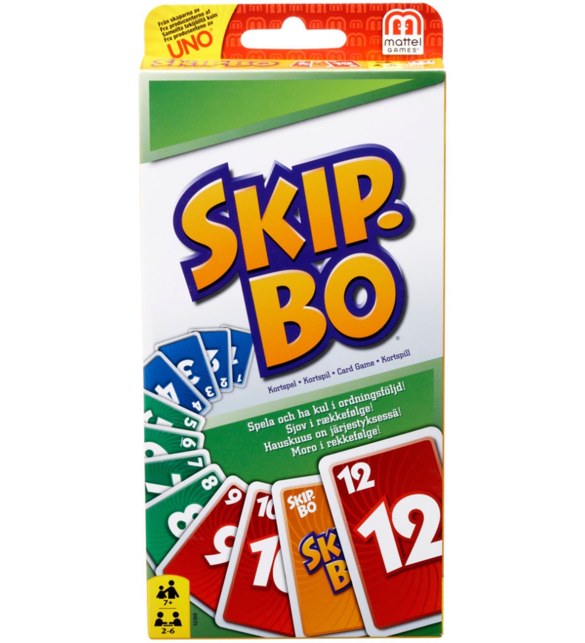 Hauska ja jännittävä korttipeli koko perheelle. Pinoa pöytäpinostasi kortteja kokoamispinoon numerojärjestyksessä aloittaen numero 1:stä ja jatkaen 12:een saakka. Pelaaja, joka onnistuu tässä ensimmäisenä, voittaa pelin. Peliä voi pelata pareittain tai yksin. Skip-Bon parissa aika rientää!