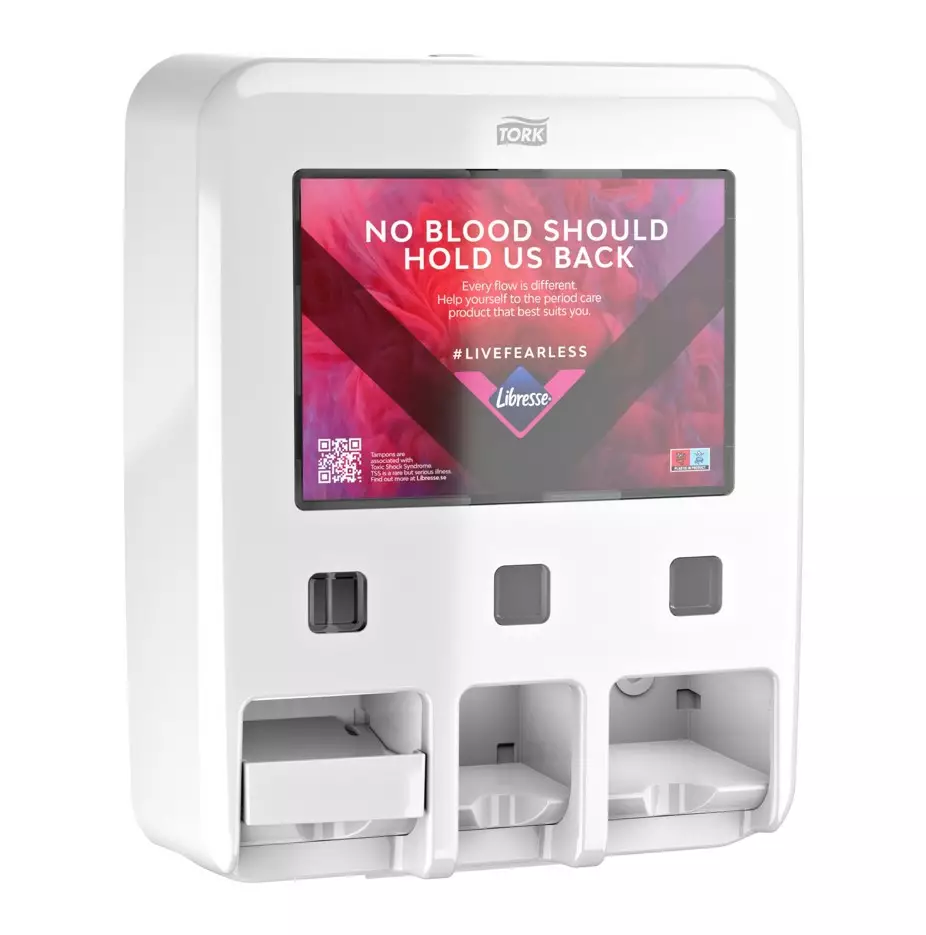 Tork annostelija kuukautistuotteille yhdessä luotettujen Libresse-täyttöpakkausten kanssa osoittaa aitoa huolenpitoa työntekijöistä ja vierailijoista. Annostelija sisältää kuukautissuojia, tamponeja ja pikkuhousunsuojia, joten tämä huomaamaton ja inklusiivinen ratkaisu vastaa moniin eri tarpeisiin. Pieni muutos, joka kertoo paljon työpaikkakulttuurista.