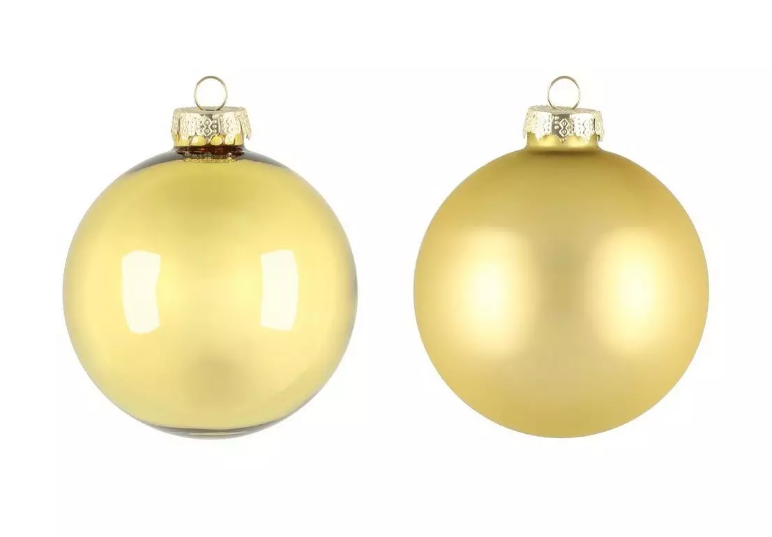 Kaunis lasista valmistettu joulukuusenkoriste. Pakkauksessa 6 kultaista palloa.