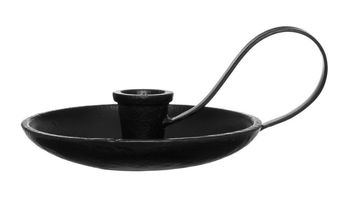 Kaunis vanhanaikaisen tyylinen, valurautainen kynttilänjalka. Kynttilänjalkaan sopivat kruunukynttilät.