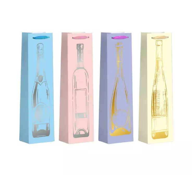 Kapea paperikassi lahjapullolle. Neljä eri värivaihtoehtoa. Tilaukselle väri valikoituu sattumanvaraisesti varastotilanteen mukaan.