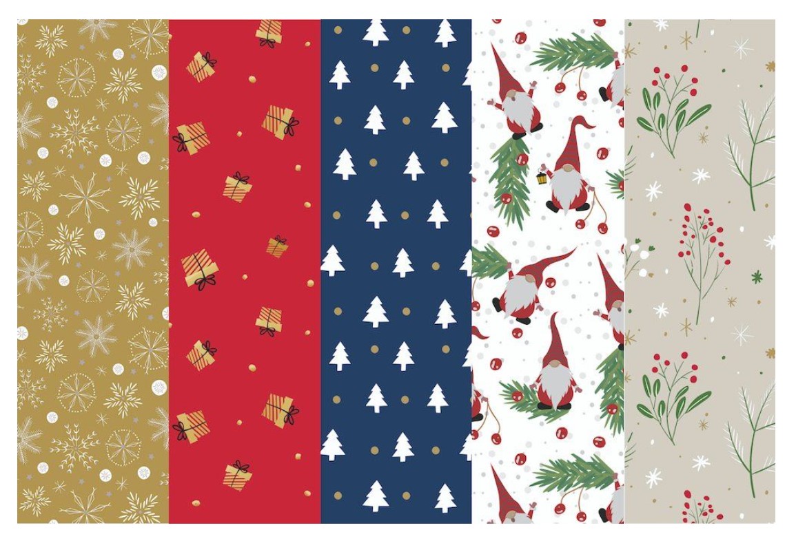 Värikkäät joulupaperit joululahjojen paketoimiseen ja joulunajan askarteluihin.