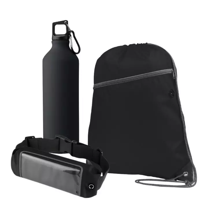 Juomapullo, puhelivyölaukku, narureppu