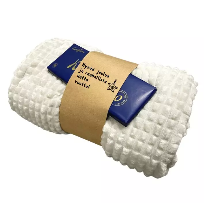 Ihanan pehmeä torkkupeitto sekä Fazerin kaikkien rakastama klassikkosuklaa