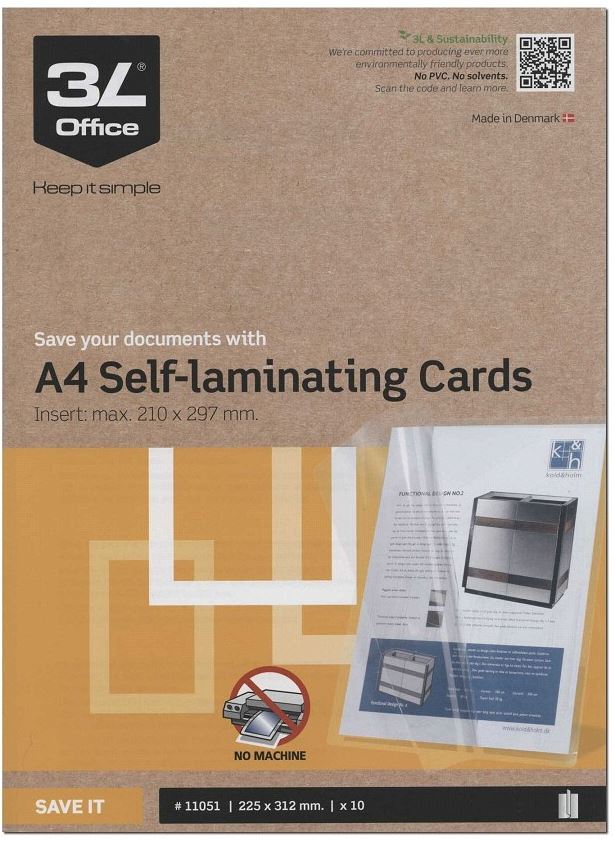 Dokumenttien laminointiin ilman laminointilaitetta. Suojaa lomaketta/esitettä/valokuvaa kulumiselta, pölyltä, kosteudelta ja lialta.
