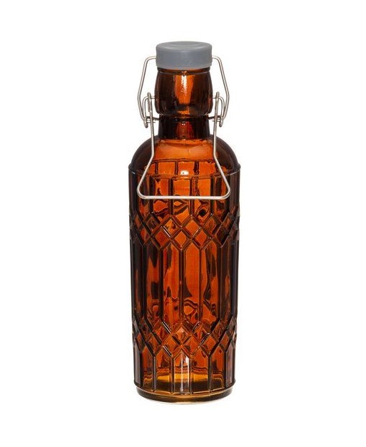 Patenttikorkillinen kaunis kuvioitu lasipullo sopii sisustusasetelmiin, leikkokukille tai omatekoisille juomille.