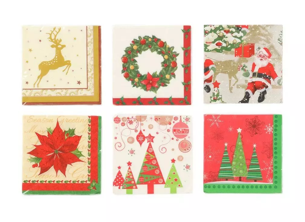 2-kerroksinen lautasliina jouluaiheisella kuosilla. Useita kuosivaihtoehtoja, joista yksi valikoituu tilaukselle sattumanvaraisesti.
