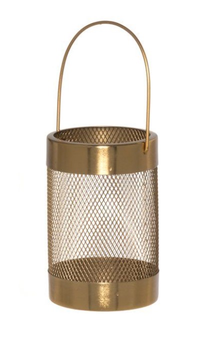 Kaunis kullanvärinen, kahvallinen metallilyhty. Lyhdyn reunat verkkoa, josta kynttilänvalo kuultaa kauniisti läpi. Kynttilälyhdyn voi asettaa pöydälle tai ripustaa roikkumaan luomaan tunnelmaa. Ripustaessasi käytä palamatonta rautalankaa/ripustusketjua ja varmista, että lyhty on riittävän kaukana verhoista ja muista syttyvistä materiaaleista.