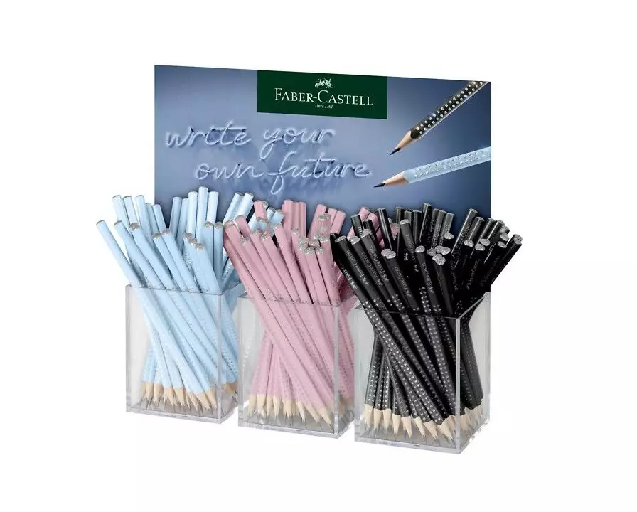 Faber-Castellin Sparkle -setti tuo ihanaa kimallusta työpöydällesi. Ergonomisen kolmikulmaisen muotoiltu ansiosta sitä on miellyttävä pitää kädessä.