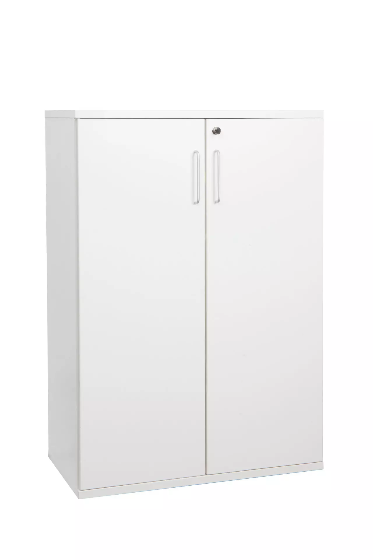 Mappikaappi lukittavilla ovilla. Mappikaapeissa on lukittavat ovet ja säädettävät hyllyvälit. Kaappien taustat ovat viimeisteltyjä, joten ne soveltuvat hyvin myös tilanjakajiksi. Ovien ja hyllytasojen reunoja suojaa ABS-reunalista, joka estää kolhiintumisen.