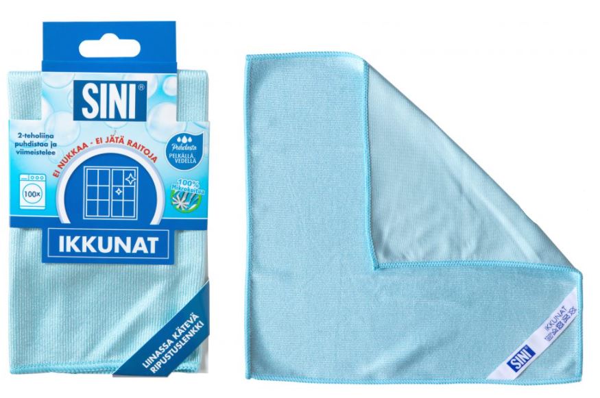 - Mikrokuituinen ikkunaliina ikkunoiden ja parvekelasien tehokkaaseen puhdistamiseen.