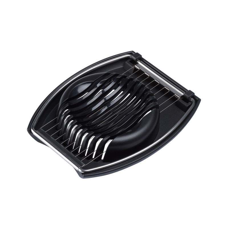 Perinteinen munaleikkuri, jonka yläosa ja langat ruostumatonta terästä. Leikkaa keitetyn kananmunan tasaisiksi siivuiksi.