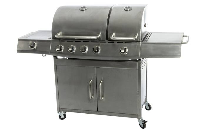 Kaksi erillistä RST kupua joissa molemmissa kaksinkertainen rakenne sekä lämpömittarit Vasemmalla 4xteräsputkipoltin 3,5kW sekä 3,2kw sivupoltin Oikealla infrapunapoltin 3,2kW Valurautaritilä ja parila Emaloitu lämpöritilä Integroidut sytyttimet säätimissä RST kärry,alakaapisto ja ovet kokonaismitat: 168x61,3x114,4cm