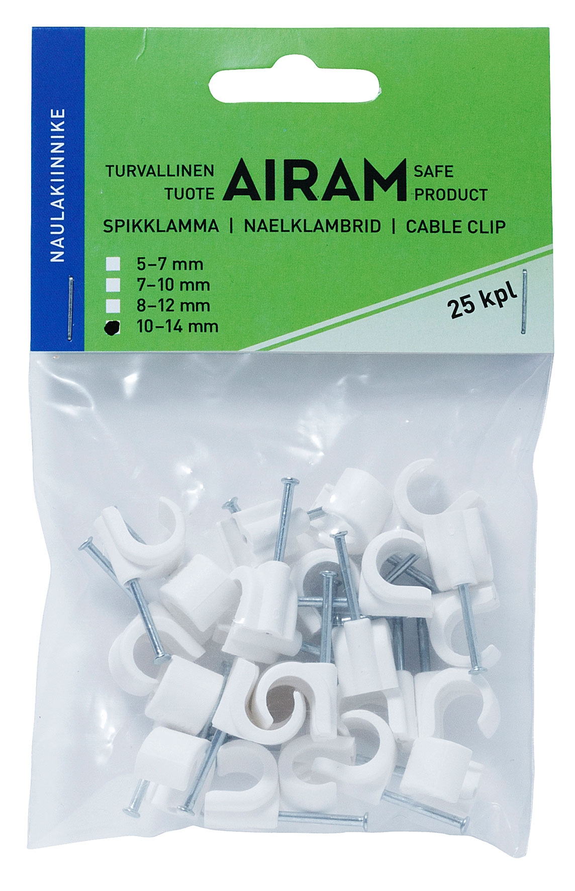 AIRAM Naulakiinnike 10-14 mm Johtojen kytkemiseen ja kiinnitämiseen. 10-14 mm. 25 kpl/pss.