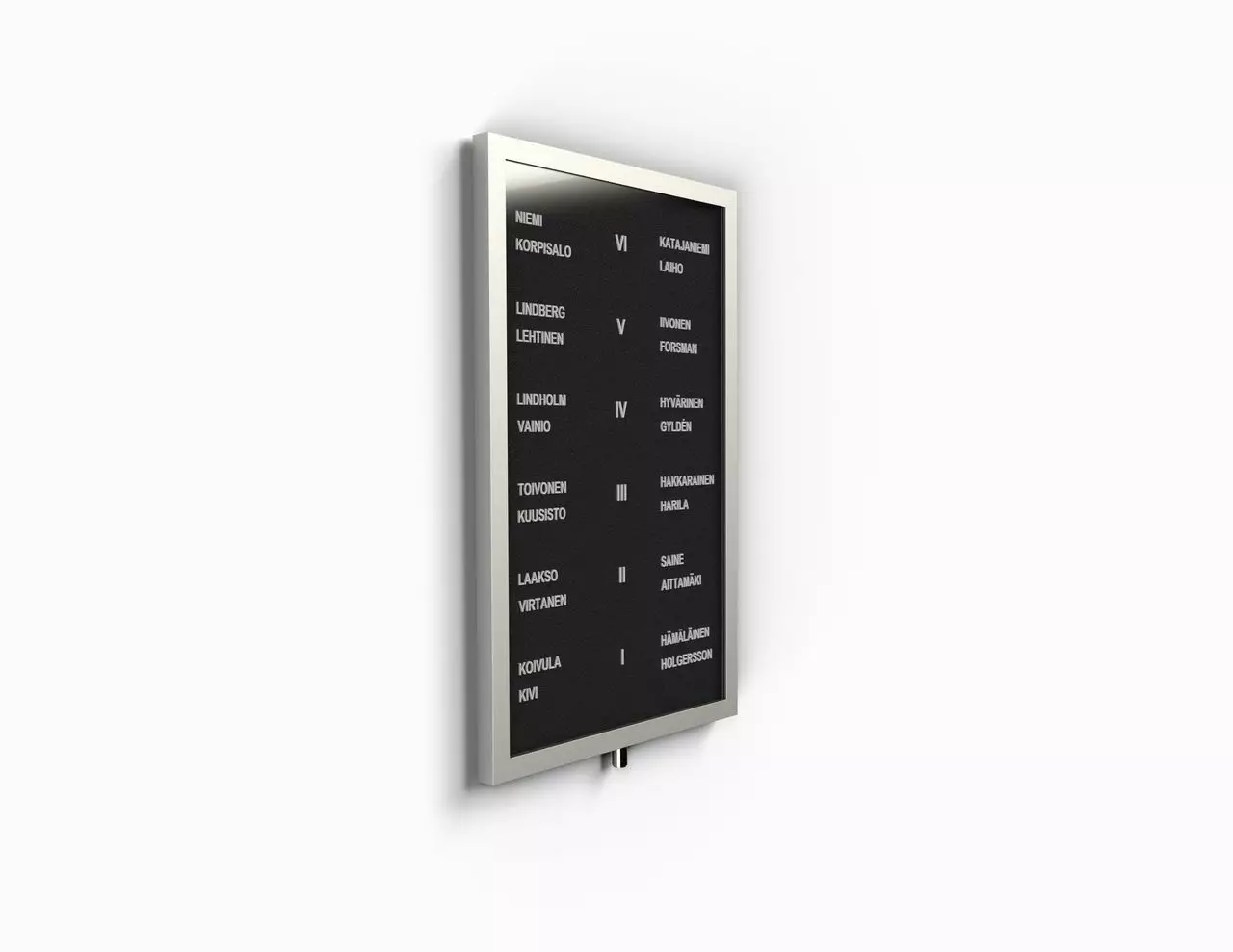 Iso lajitelma nimitauluun sopivia kirjaimia.