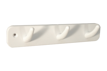 Perinteinen 3-koukkuinen naulakko vaatteiden, pyyhkeiden ym. ripustukseen. Hakusanat: naulakko, koukku, vaatekoukku, vaatenaulakko