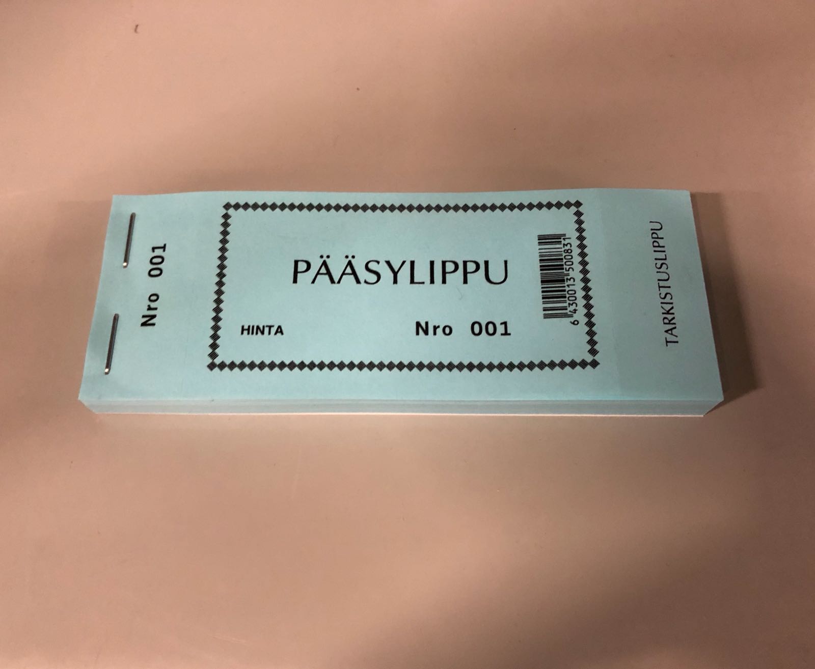 Paperiset pääsyliput juoksevalla numeroinnilla (001-100). Lipuissa repäistävä tarkistuslippu. Jokaisesta lipusta jää pääsylippuniteeseen numeroitu kanta, johon on mahdollista halutessaan tehdä pieniä lippukohtaisia merkintöjä.