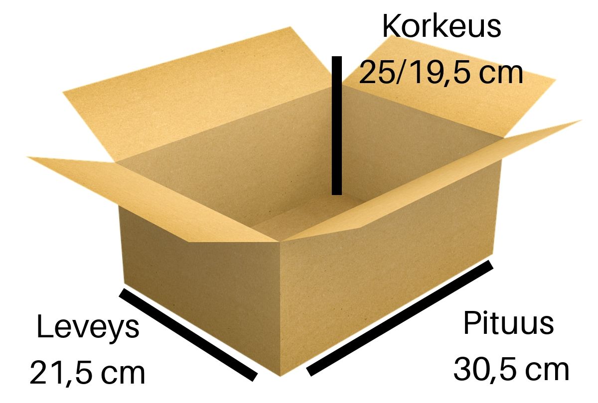 Mikäli korkeusmitoissa on merkintä esim. 190/150, voidaan pahvilaatikko helposti madaltaa alempaan mittaan.