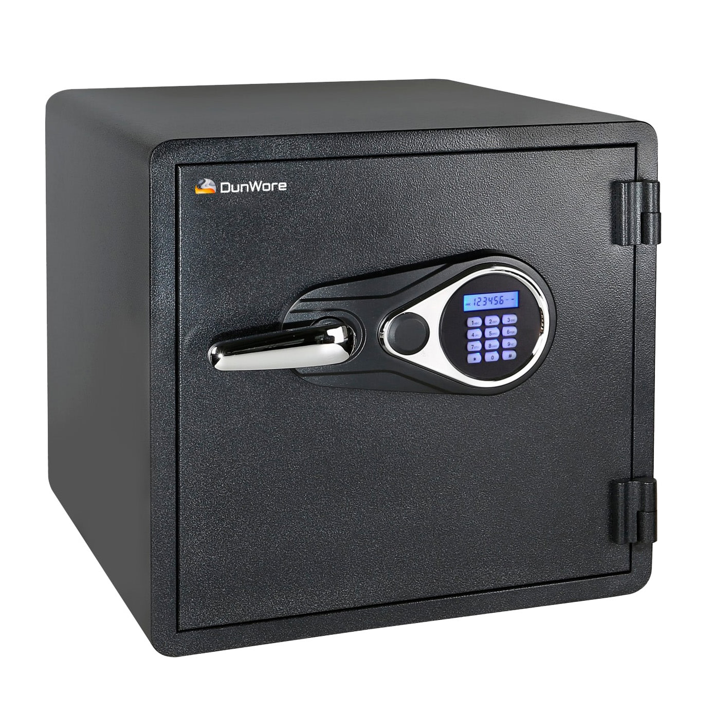DunWore LCD230 paloturvakaapissa säilytät kaikki tärkeimmät arvoesineesi ja tärkeät dokumentit niin kotona kuin toimistoissakin. Paloturvakaappi kestää niin tulipaloa kuin sammutusvettäkin. Turvakaapin oven saa auki vain avaimella tai sarjanumerolla. Tarvitset kaappiin joko digitaalisen avainyhdistelmän tai fyysisen avaimen. Älä koskaan turvallisuussyistä säilytä avaimia samassa talossa kuin kassakaappia. Voit hätätilanteessa itse ohittaa digitaalilukituksen ja avata kaapin hätäavaimella. Murtovarmuutta antavat kolme salpaa sekä kaksi lukkiutuvaa murtosalpaa ja suojaus magneettiaukaisua vastaan.