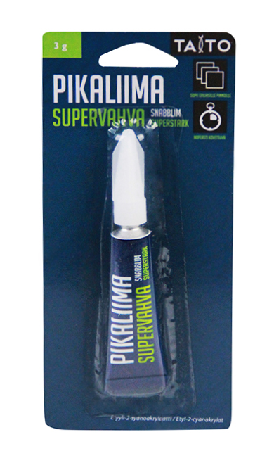 - Liima kuivuu erittäin nopeasti ja pitää liimauskohteen vahvasti paikoillaan.