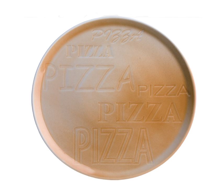 Lautanen, jossa painatuksena PIZZA-tekstejä. Lautasen Ø 33 cm. Väri: ruskeahiekka.