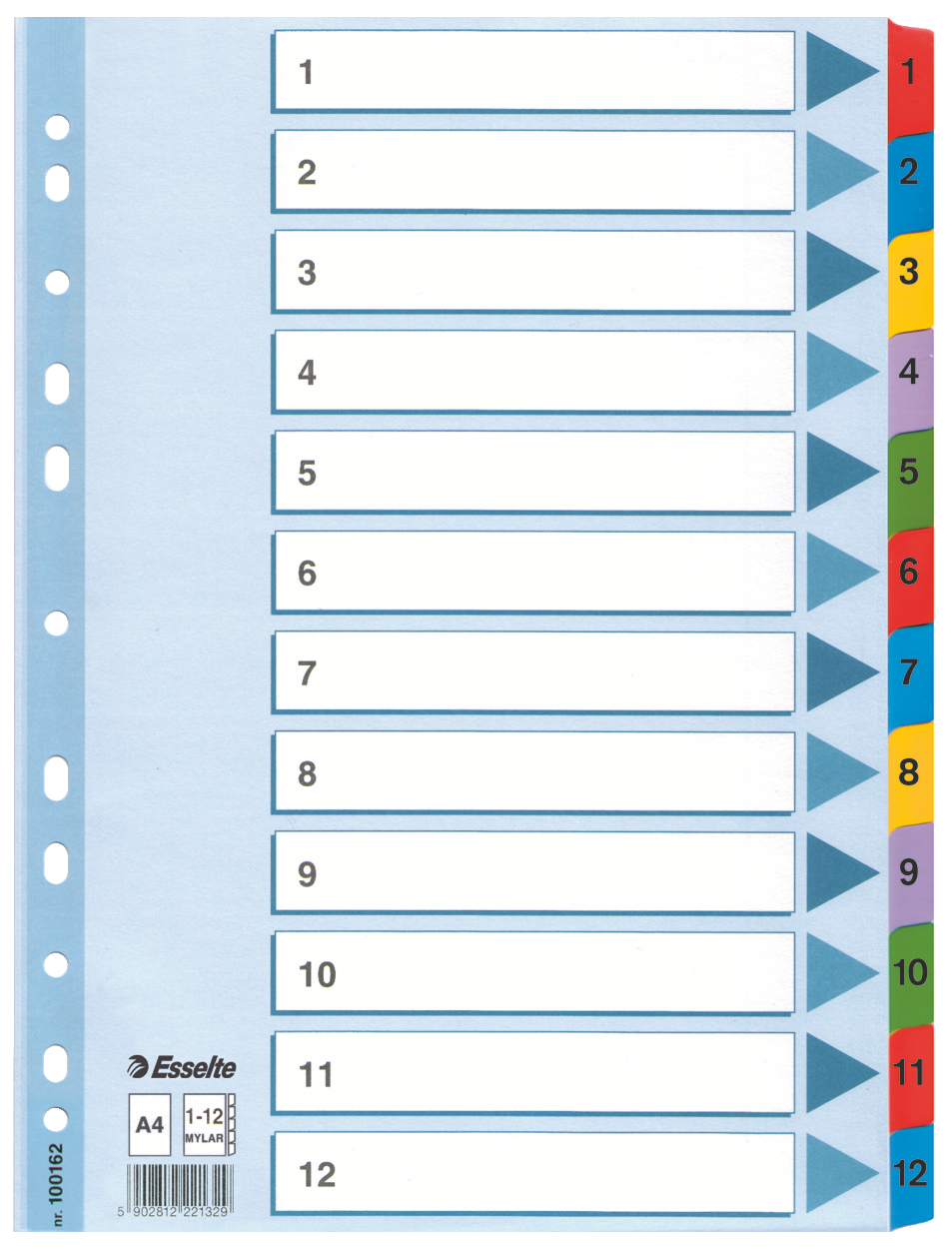 Rekisteri 1-12 A4 ESSELTE kartonki Mylar