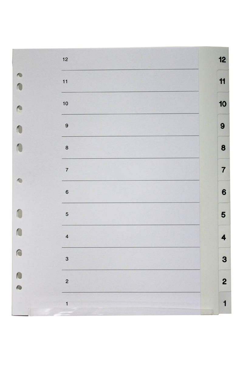 Muovihakemistossa A4 on valkoiset polypropeeniset lehdet (paksuus 125 my). Painettu etusivu ja kielekkeet.
